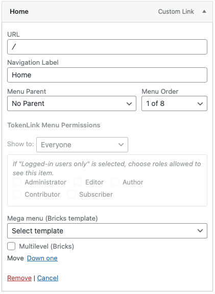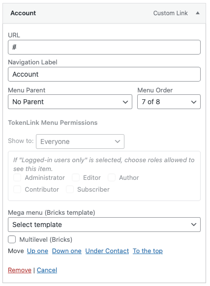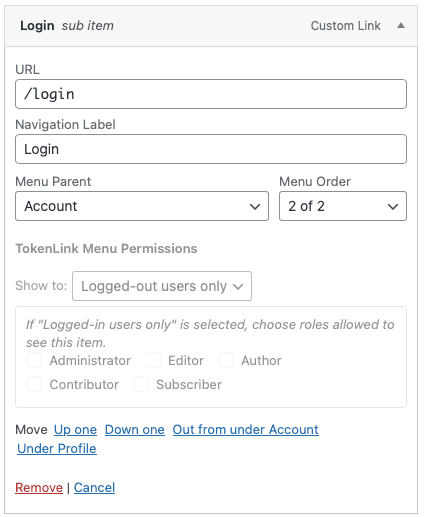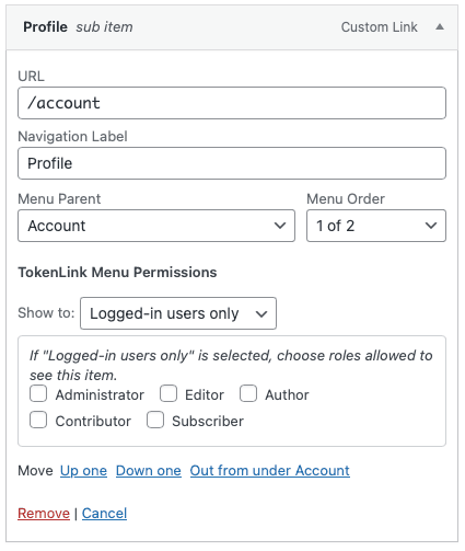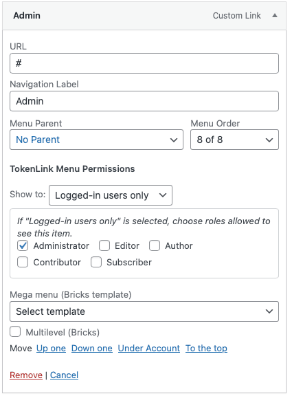 TokenLink Menu Permissions