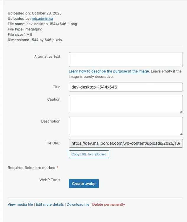Once created, the .webp file appears in the Media Library automatically.