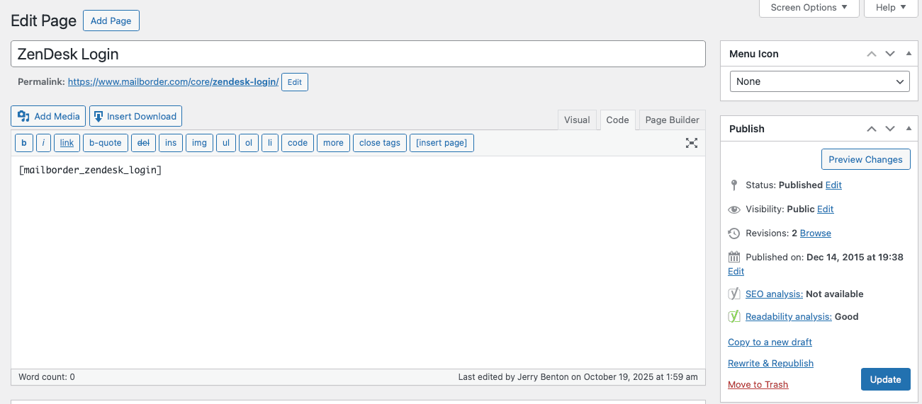 - Add the shortcode [ tokenlink_zendesk_login ] (remove spaces) to any page , and optionally link that page from a menu item.